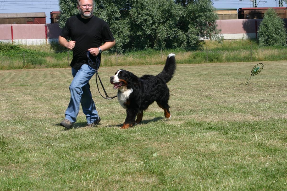 Im Juni konnten wir ihn zu uns nach Braubach holen. Er fühlte sich direkt wie zu Hause. Das lag wohl auch an Kosmo, unserem 1. Berner. Obwohl der ruhige Kosmo nicht sehr begeistert war von dem quirligen kleinen Kerl, erduldete er ihn gelassen. Bei der Erziehung von Linus half Kosmo mit, ein Blick von ihm und Linus ging von dem Sofa. Auch, dass die so bequemen Betten für Hunde verboten sind brachte Kosmo ihm bei. ![]() Schon im Juli fuhren wir mit den beiden Hunden in den Urlaub ins Allgäu. In unserer Pension waren noch andere Hunde, mit denen freundete sich Linus schnell an. An besten gefiel ihm aber das Rennen über die weiten Wiesen. Manchmal sah man von ihm nur noch eine weiße Schwanzspitze und fliegende Ohren wenn er den kleinen weißen Fliegen hinterher jagte. ![]()